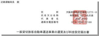 「一般貸切旅客自動車運送事業の運賃及び料金設定」の届出を致しました。